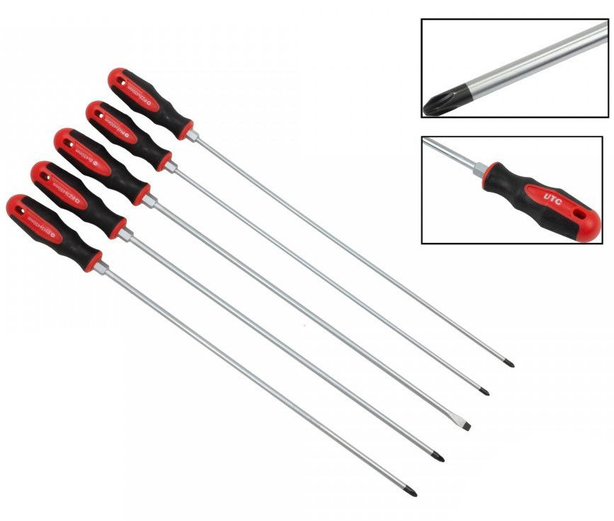 UTC Tools 800024-UTC extra hosszú csavarhúzó készlet (lapos, Phillips, pozidriv), 5 részes