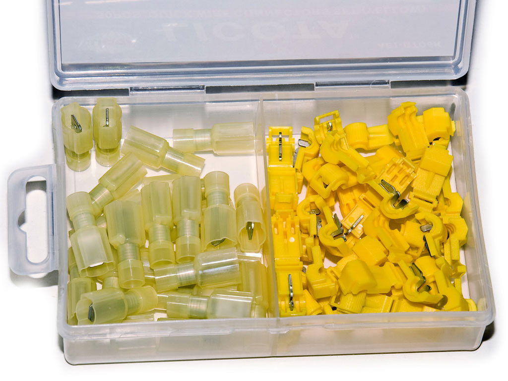 Alkalmas vezetékek toldására, össze-/rákapcsolására. Az élénksárga csatlakozó összezáráskor bemetszi a "fővezetéket", majd ennek végére a halványsárga csatlakozóba rögzített másik vezetékkel együtt a sarut rátolva létrejön a két vezeték közti összekapcsolás (elágazás), blankolás nélkül!