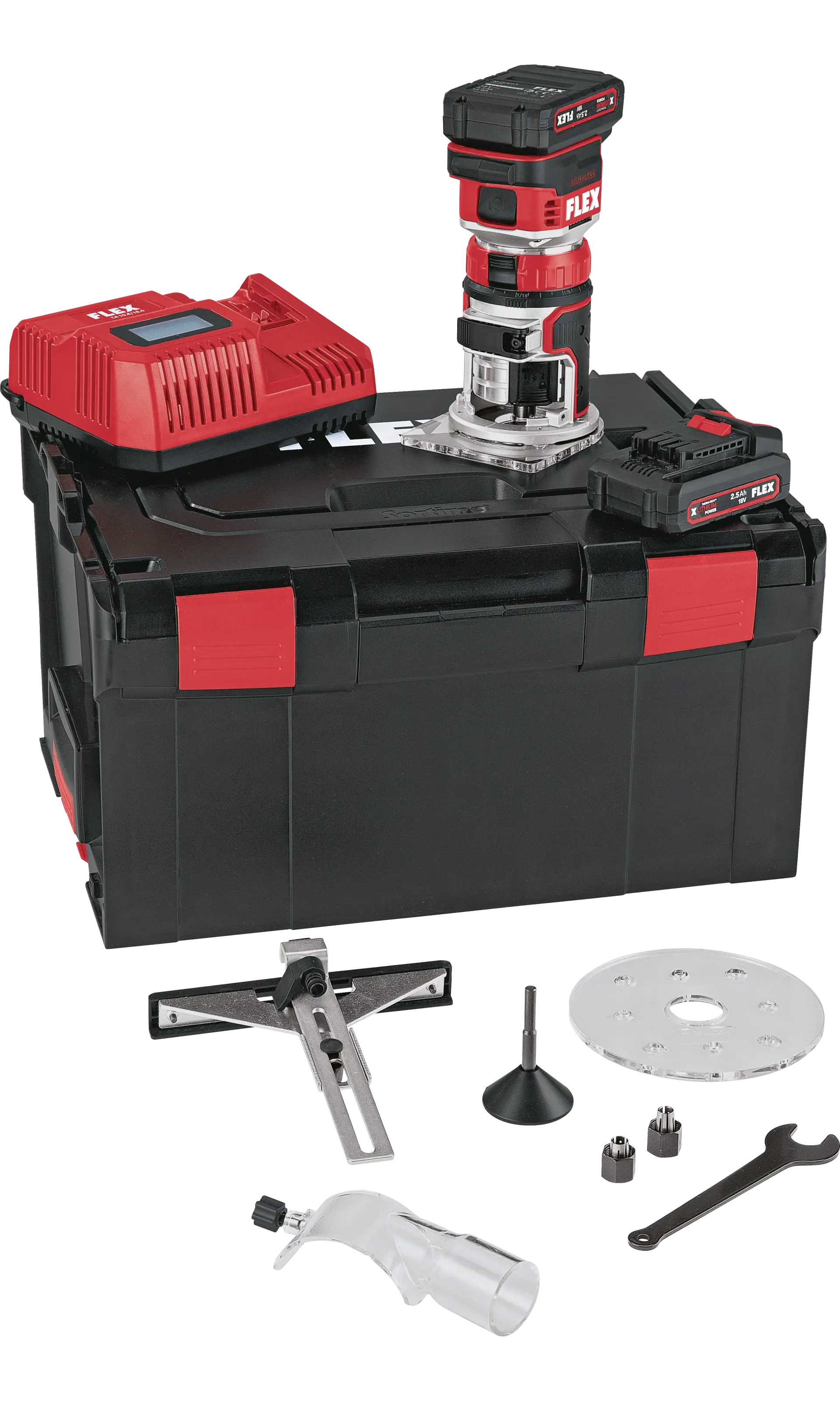 Flex CER 18-EC/2.5 AH Szett akkus élmaró és felsőmaró (2 x 2.5 Ah Li-ion akkuval, L-BOXX-ban)