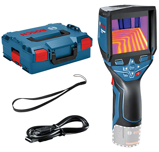 - A GTC 400 C Professional hőkamera méri és másodpercek alatt megjeleníti a hőmérsékleti különbségeket, az eredmények pedig egyszerűen menthetők. A Bosch Thermal alkalmazás rögzíti és gyorsan továbbítja a mért értékeket. Az intelligens „kép a képben” technológia egymásra illeszti a részletes valós és hőérzékelési képeket (19 200 pixel). Az eredmény: kiváló minőségű kép és a hőmérsékleti különbségek helyének egyértelmű meghatározása.
