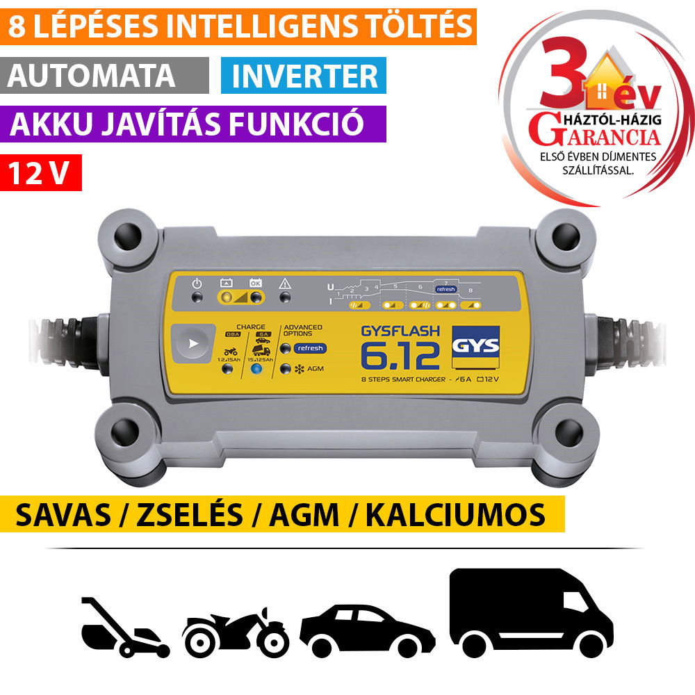 GYSFLASH 6.12A inverteres akkumulátor töltő