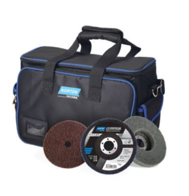 Norton 3-részes készlet a hegesztési varrat eltávolításától a fényes felületig. Norton csiszolókorongok sarokcsiszolókhoz, amelyek a legnépszerűbb szerszámokból áll főként rozsdamentes acélokhoz anyageltávolításhoz, felületek összedolgozására és simítására profi szerszámostáskában.