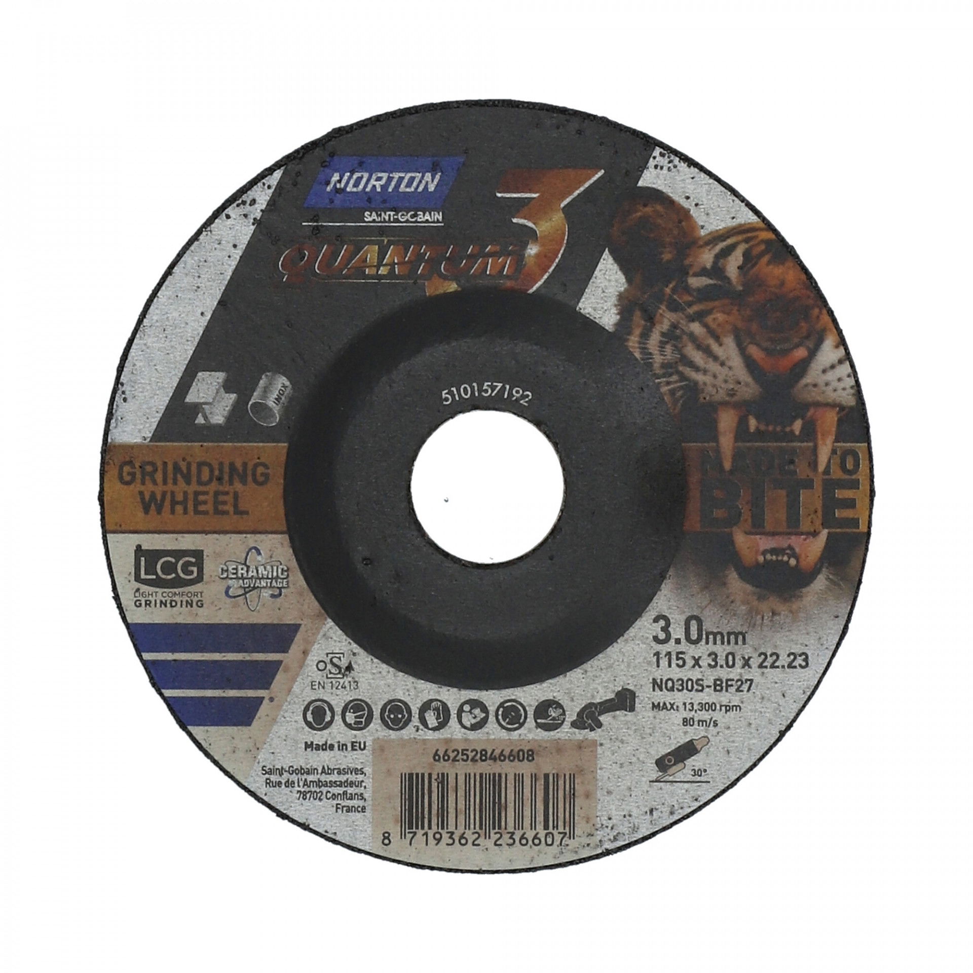 A Norton Quantum 3 Light Comfort Grinding (LCG) kerekek 3 mm vastagok, 3 egyértelmű előnnyel; Gyorsabbak, simábbak és pontosabbak, mint hagyományos 7 mm-es társaik könnyű csiszolási alkalmazásokban. Gyorsabb anyageltávolítás a kerámiaszemcséknek és a tervezett ragasztási technológiának köszönhetően. A vékonyabb tárcsa pontosabb csiszolást jelent bonyolult vagy kisebb területeken. 3 mm vastagságnál kevesebb energia kell a korong bekapcsolásához és használatához, akár 50%-kal hosszabb akkumulátoros üzemidő a vezeték nélküli csiszológépeknél.