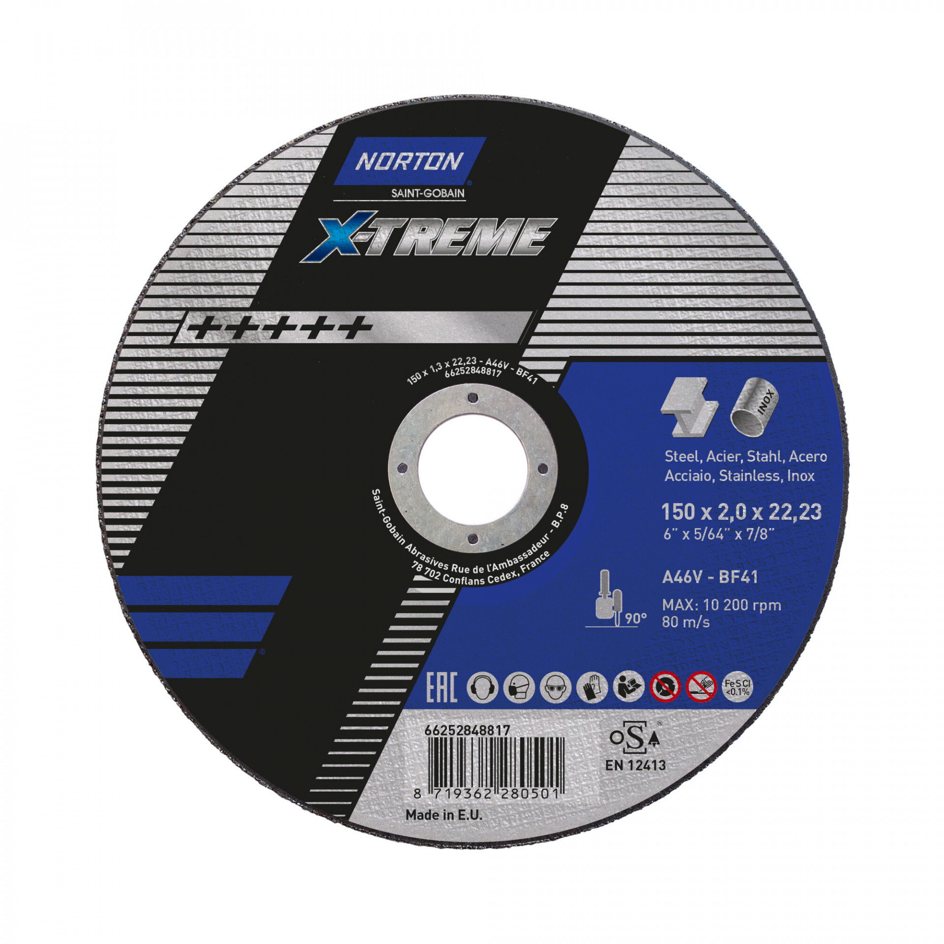 Norton X-Treme Life fém-inox vágókorong 150x2,0x22,23mm A46V, 25 db/csomag